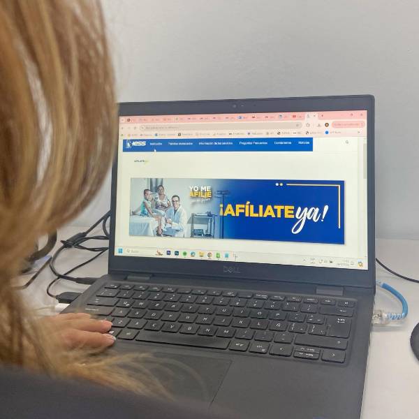 Una persona realizando la afiliación voluntaria al IESS.( )