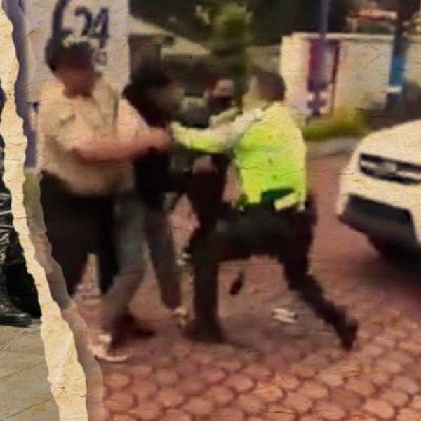 Se trata de un video en el que se observa a un grupo de jóvenes que agreden a miembros de la Policía Nacional. En las imágenes se ve como un ciudadano pone resistencia para evitar ser detenido y se enfrenta a los uniformados con puñetes, incluso los patea.