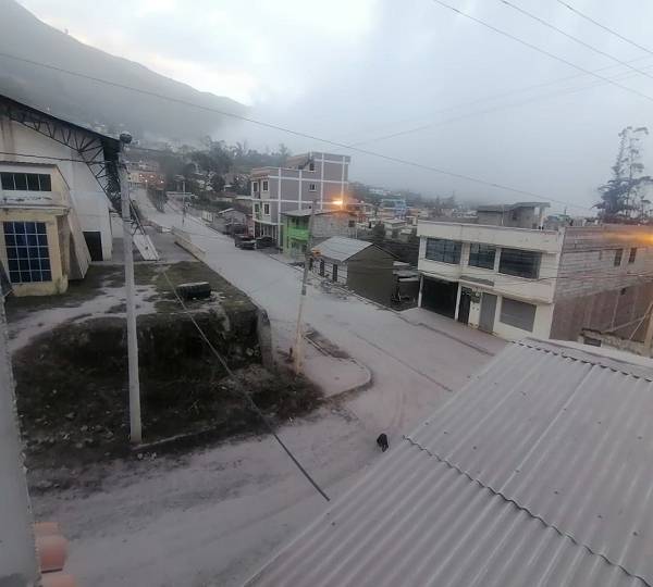 Aceras, techos de viviendas, y vehículos completamente cubiertos de ceniza, se registraron esta mañana en Alausí , tras un incremento en el proceso eruptivo del volcán durante la noche de ayer lunes.