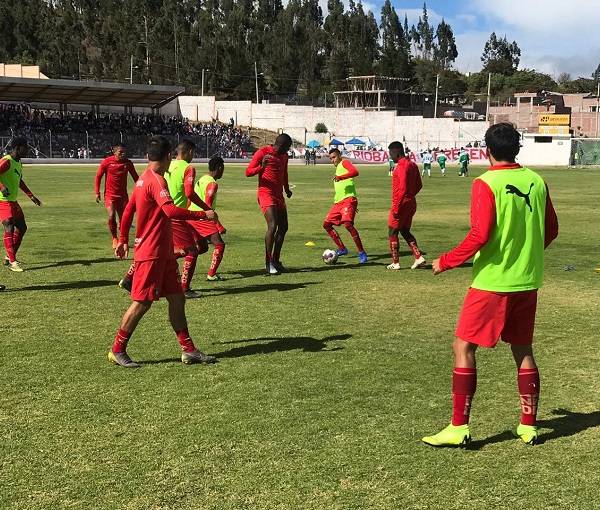 Jugadores de Liga de Quito haciendo la entrada en calor. Foto: Twitter LDUQ.