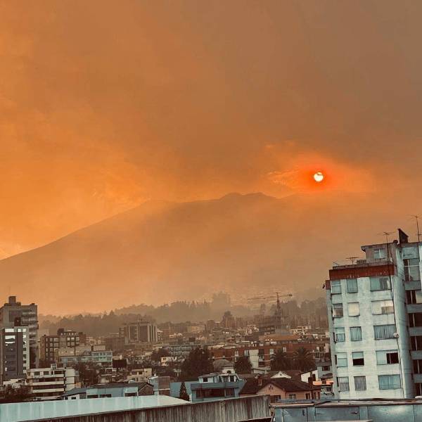 Cielo de Quito el martes 24 de septiembre, el sol anaranjado o rojizo se debe a la dispersión de Rayleigh, donde el humo en el aire interactúa con la luz solar, provocando este efecto visible.( )