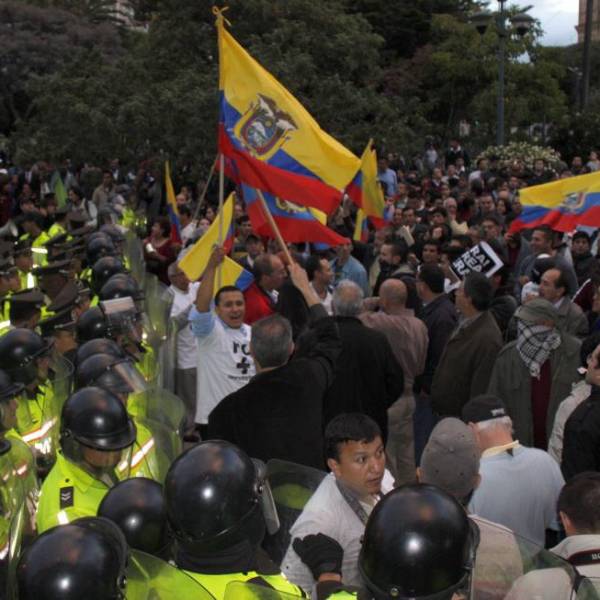 En Cuenca, sectores de la oposición se reunieron en la glorieta del parque Calderón. Allí cientos de opositores ocuparon el parque con banderas del país y gritaron consignas en contra del Gobierno.