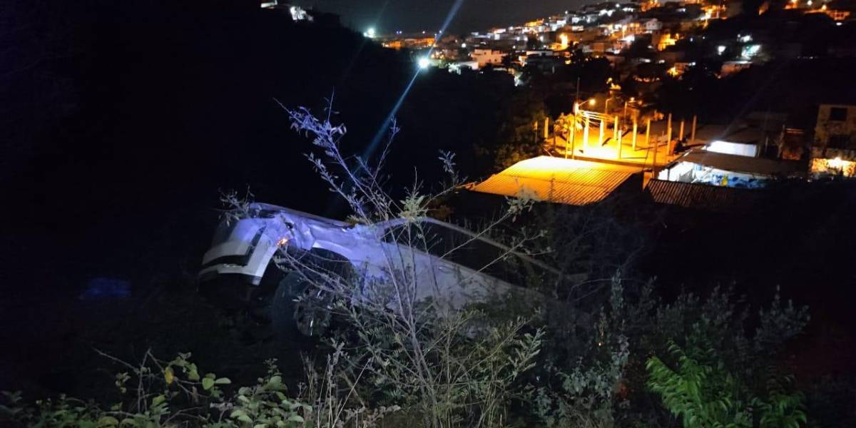 Imagen del carro que quedó en una pendiente, rodeado de arbustos, en donde falleció Andres Peñaherrera.( )