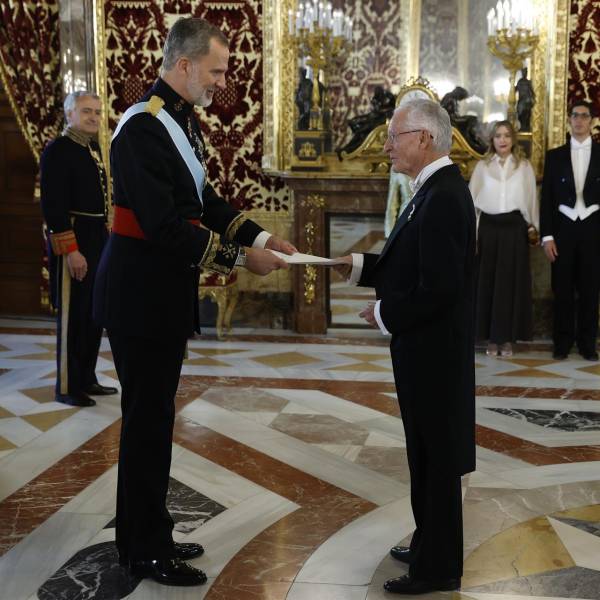 Momento en el que Andrés Vallejo entrega las cartas credenciales a Felipe VI. ( )