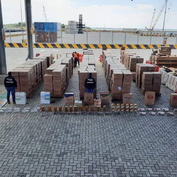 El cargamento, que estaba conformado en gran parte por cigarrillos y whisky, fue detectado en la terminal portuaria de Posorja, mientras se realizó la inspección en un contenedor.