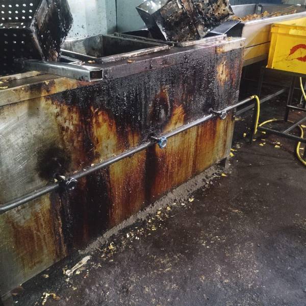 A ello se sumó suciedad y grasa encontrada en las áreas de elaboración de los alimentos. En imágenes compartidas por la entidad se observa una cocina industrial con rastros de grasa quemada.