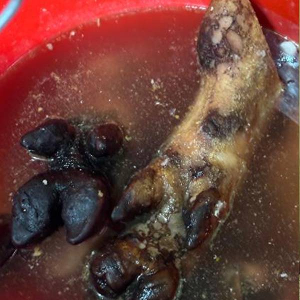 Uno de los hallazgos que más sorprendió a los inspectores fue el acopio de pezuñas de animales crudas, guardadas en ollas y baldes destapados, mezcladas con líquidos y sin ningún tipo de control sanitario.