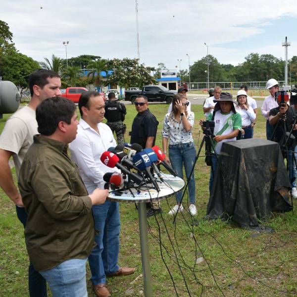 Rueda de prensa desde las instalaciones de Termogas Machala. ( )