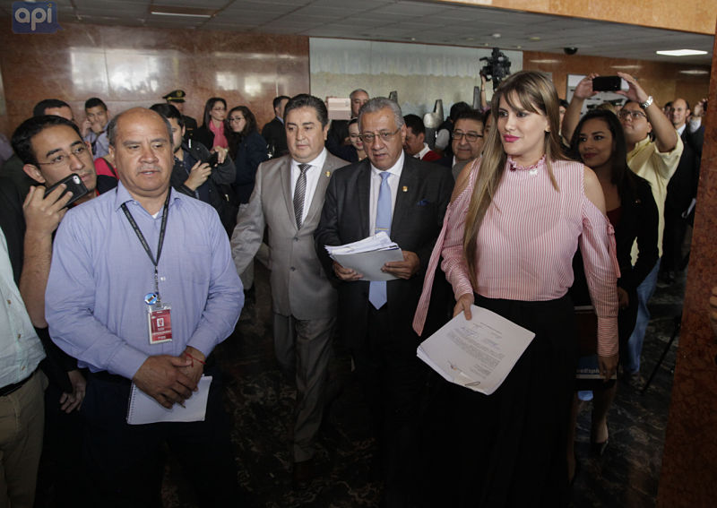 Con 59 firmas de respaldo, asambleístas de varias bancadas formalizaron el 31 de mayo de 2018 la solicitud de juicio político a la canciller Espinosa, por incumplimiento de funciones.