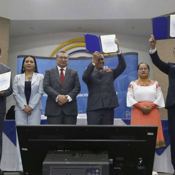 Juan Carlos Tuárez, Sofía Almeida, María Fernanda Rivadeneira, Walter Gómez, Rosa Chalá, Victoria Desintonio y Christian Cruz son acreditados como los consejeros principales del organismo, cuyo periodo transitorio está por concluir.