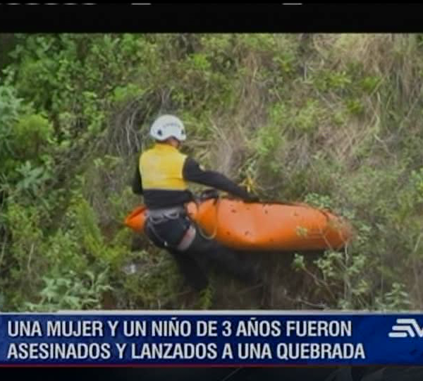 Rosa P. de 32 años y Diego T. fueron hallados sin vida en la quebrada de Aipud, en la parroquia de Tixán. Efectivos de Criminalística y del Grupo de Operaciones Especiales (GOE), llegaron al sitio para la rescatar los cuerpos.