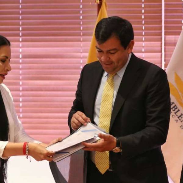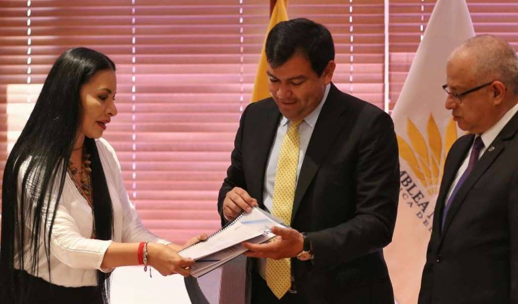 César Litardo, máxima autoridad del Legislativo, anunció que las reformas presentadas por la función Electoral, serán tramitadas por la comisión de Justicia, presidida por Ximena Peña (también presente en el acto de entrega).