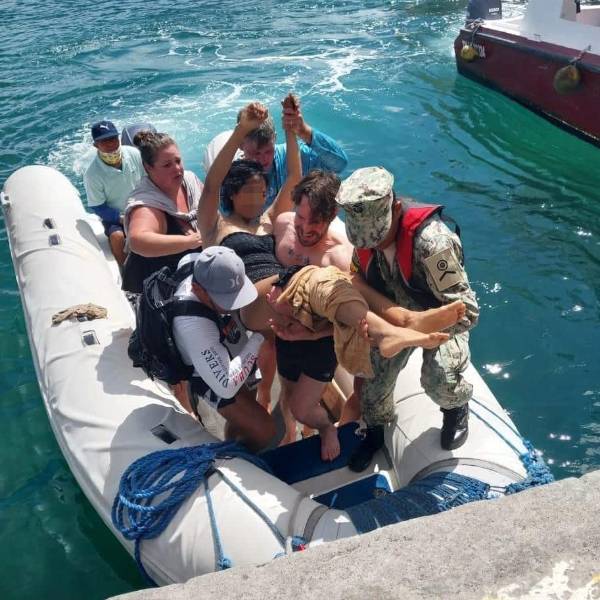 Sus acompañantes y personal de la Armada del Ecuador brindaron los primeros auxilios y llevaron a la turista en una embarcación hacia el muelle más cercano, para luego trasladarla de emergencia a una casa de salud en Santa Cruz.