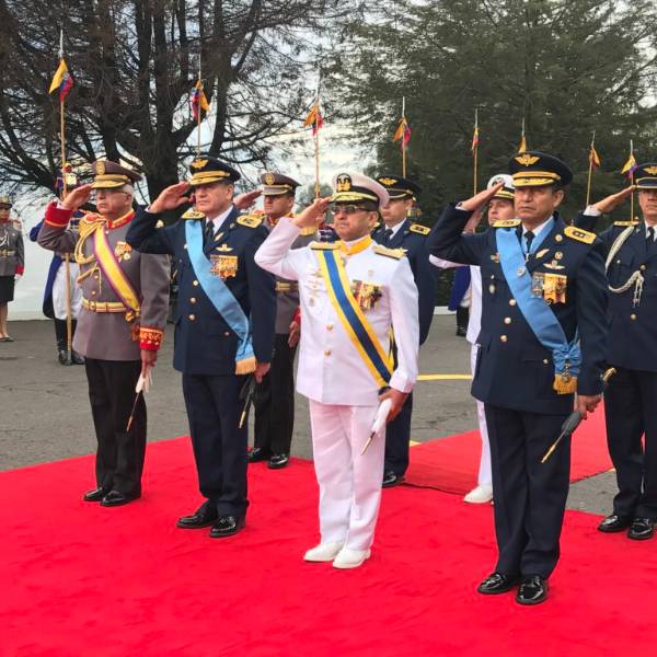 El ministro de Defensa, Oswaldo Jarrín, no dio un discurso y en su lugar lo hizo el subsecretario de Defensa, Washington Guevara, quien habló del papel de las Fuerzas Armadas para afrontar la crisis de la frontera norte.