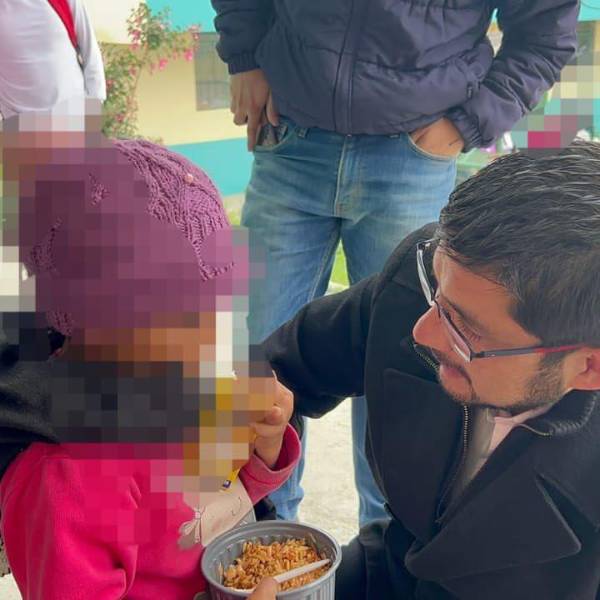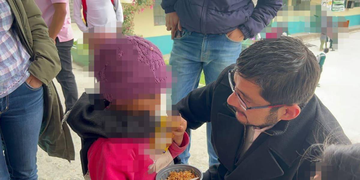 Wilo Rivera junto a la niña agredida en la parroquia El Tambo de la provincia del Cañar.( )