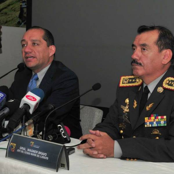 El viceministro de Defensa, Carlos Larrea y el mayor del Ejército mostraron un video como evidencia.
