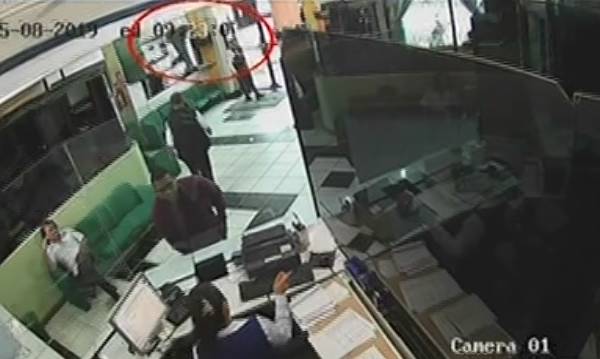 Eran las 9 de la mañana con 23 minutos y parecía todo normal, pero un minuto después ingresaron los delincuentes y sometieron a clientes y guardias.