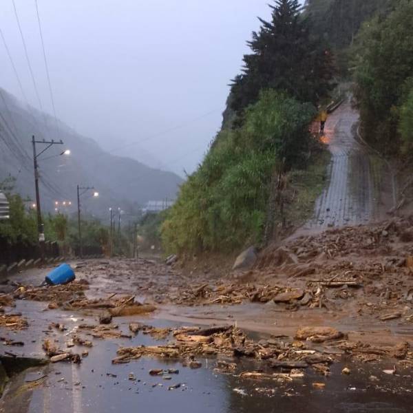 En este mismo sector, un deslizamiento de magnitud interrumpió totalmente el paso por la vía de primer orden, afectando a personas y maquinaria que se encontraba trabajando en el sector.