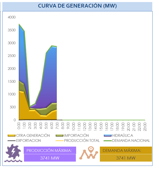 Un ejemplo de ello es la energía producida por el complejo hidroeléctrico Paute y la hidroeléctrica Minas San Francisco (que pertenecen a Celec Sur, que entre las 02:00 y las 05:00, solo produjeron 47MW.