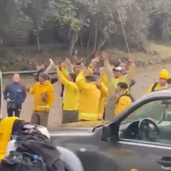 Los bomberos celebran la caída de lluvia.( )