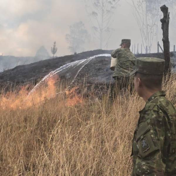 Veintidós bomberos de los cantones Calvas, Espíndola, Sozoranga, Zapotillo y Macará trabajan para contener las llamas. Adicionalmente, hay 22 militares y 45 funcionarios del Municipio de Calvas apoyando en las tareas.
