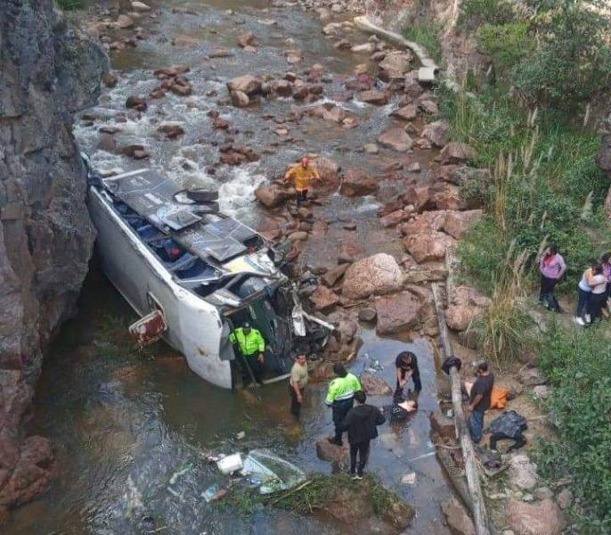 Un bus que iba en la ruta Cuenca - Loja se volcó y cayó al río León, en el sector Oña, en el límite provincial. El reporte indica que, al momento, hay cuatro personas fallecidas, dos menores de edad y dos adultos y 29 pasajeros heridos.