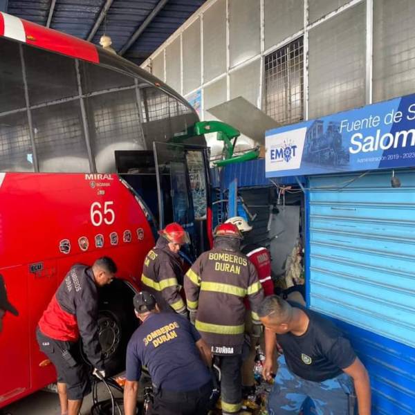 Cerca de las 14:00, de este martes 13 de julio, el ECU 911 recibió una llamada de un ciudadano que alertó sobre un accidente en la Terminal Terrestre de Durán. Un bus habría perdido los frenos y se estrelló contra un quiosco.