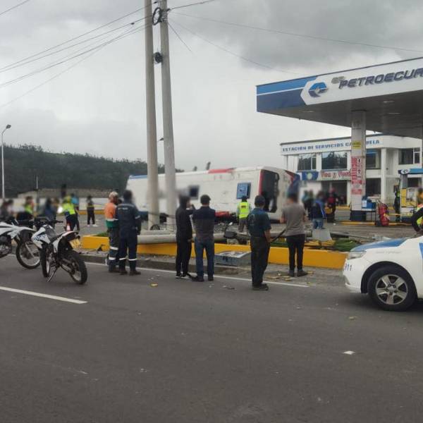 El vehículo terminó volcado en una estación de gasolina y destruyendo postes de luz a su paso. Por este motivo, se coordinó la atención de Emelnorte, empresa eléctrica de Imbabura.