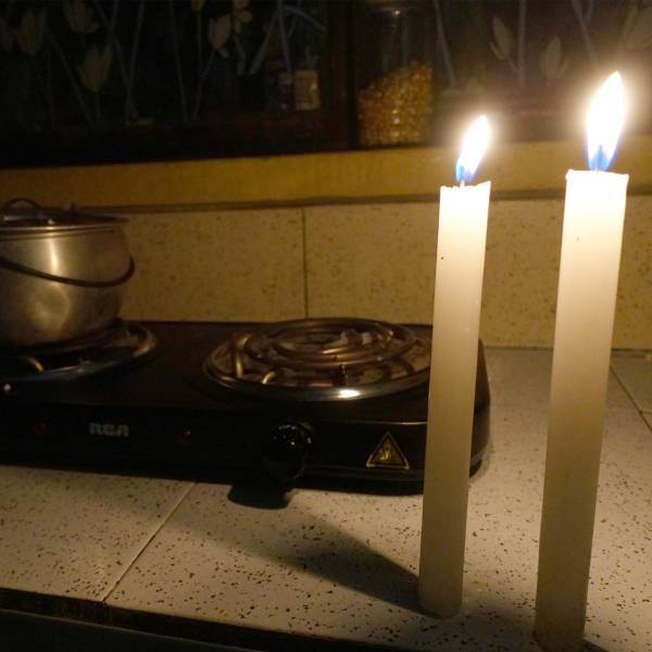 Una familia usa velas ante la falta de luz eléctrica.( )
