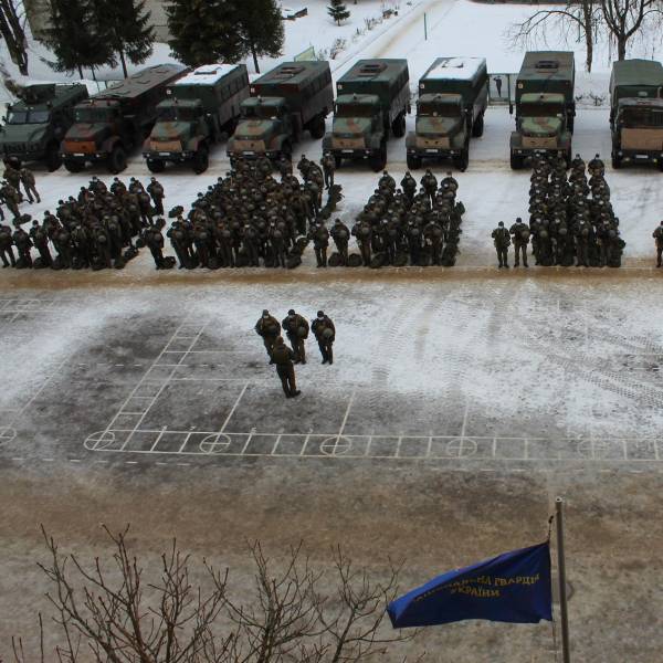 Agentes de la Guardia Nacional de Ucrania durante una práctica especial en Kiev.( )