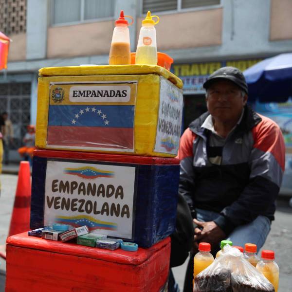 Fotografía de archivo en donde se ve a un migrante venezolano mientras vende sus productos en una calle de Quito( )