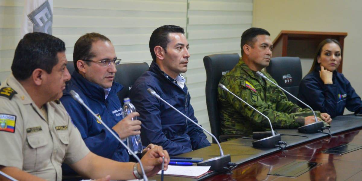Autoridades de la Policía Nacional, Fuerzas Armadas y Gobernación de Azuay ofrecieron una rueda de prensa.( )