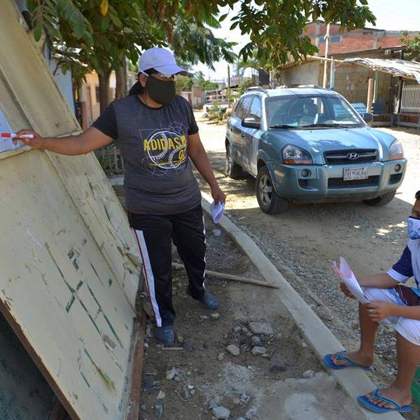 PLAYAS.- Carolina Espinoza imparte clases a estudiantes que no tienen internet. Foto: EFE