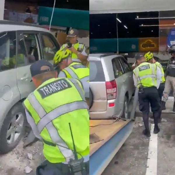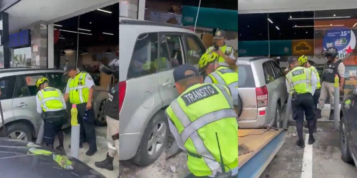 Tras varios minutos, el carro fue retirado del sitio con una grúa. Por otra parte, la atención en la tienda fue suspendida.