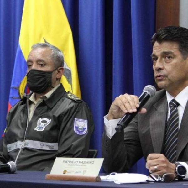 El Ministro de Gobierno (d.), Patricio Pazmiño en rueda de prensa. Foto: Archivo