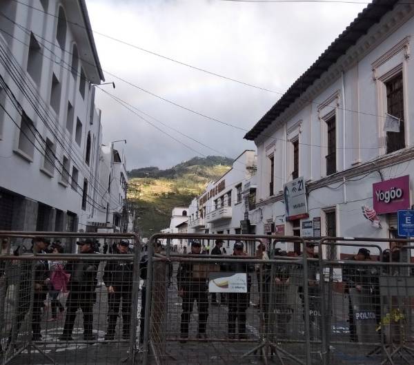 Decenas de policías custodiaban los exteriores de la Corte Provincial de Imbabura. Foto: INREDH