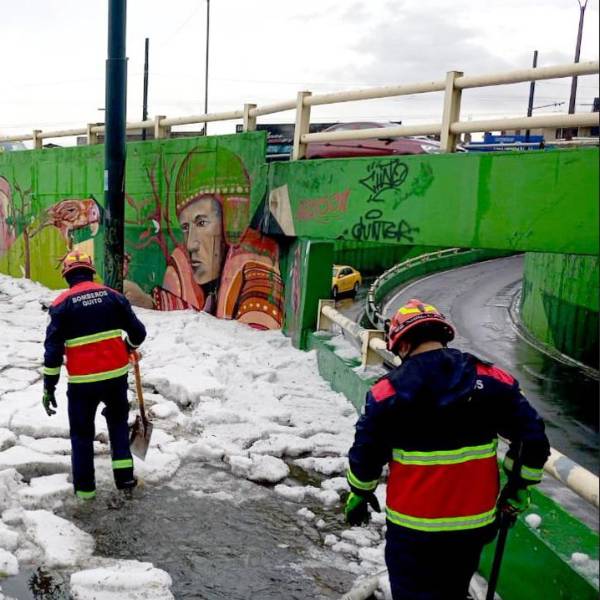 Mientras que en el sector del puente del río Machángara, agentes metropolitanos ayudaron a un conductor que con su moto eran arrastrados en medio de la calle. También la fuerza del agua se llevaba a una mujer.