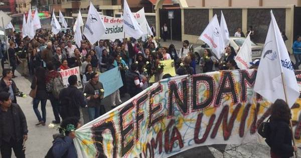 Un grupo de estudiantes de la universidad protagoniza marcha de respaldo al rector.