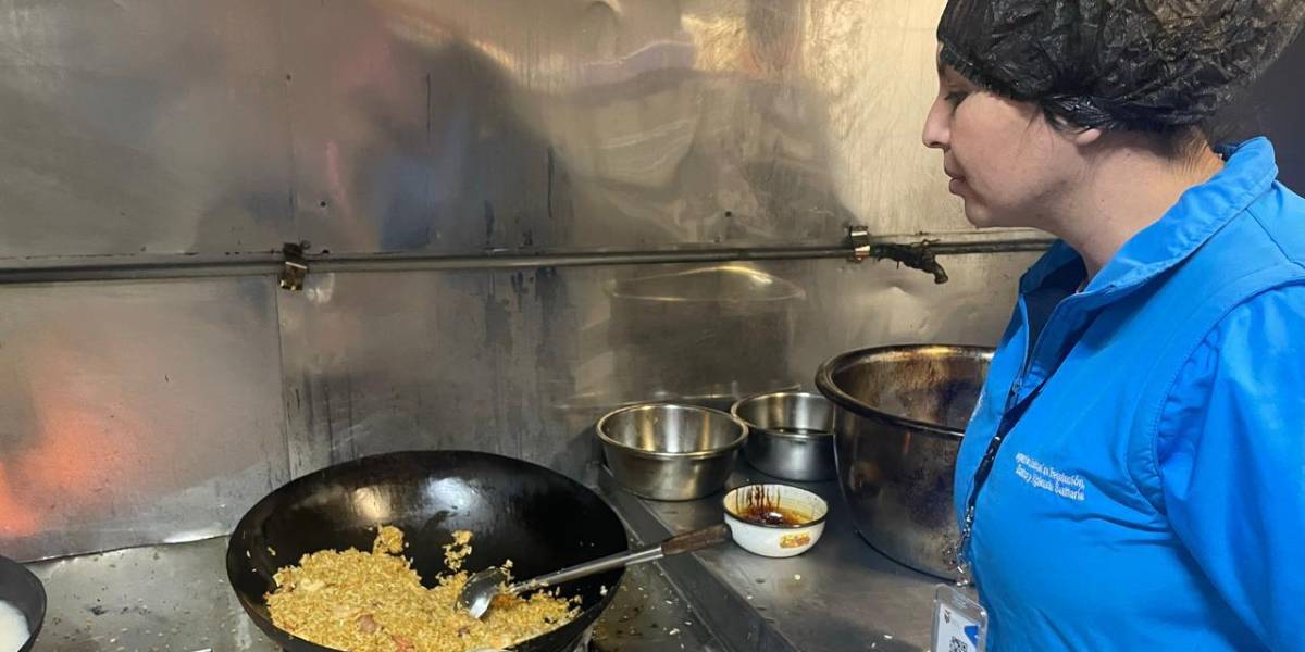 Imagen de una funcionaria del Arcsa inspeccionando un chifa.( )