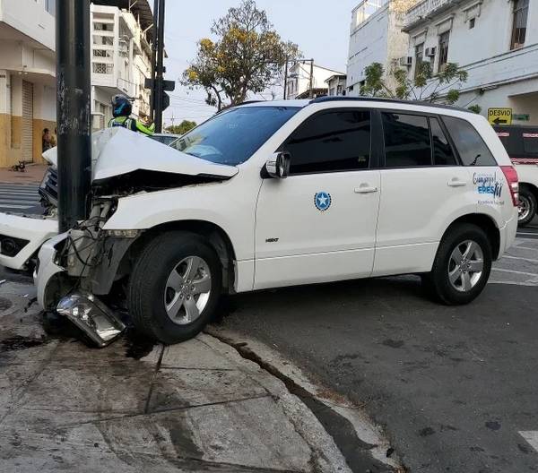 El accidente de tránsito quedó registrado en video. Se observa como el automotor impacta al hombre que intentaba cruzar la calle en su bicicleta. El chofer, en aparente exceso de velocidad, termina chocándose contra un poste. Ambos resultaron heridos. El conductor fue llevado al hospital Luis Vernaza, mientras el ciclista fue trasladado a la clínica Proaño, explicó la Autoridad de Tránsito Municipal (ATM).