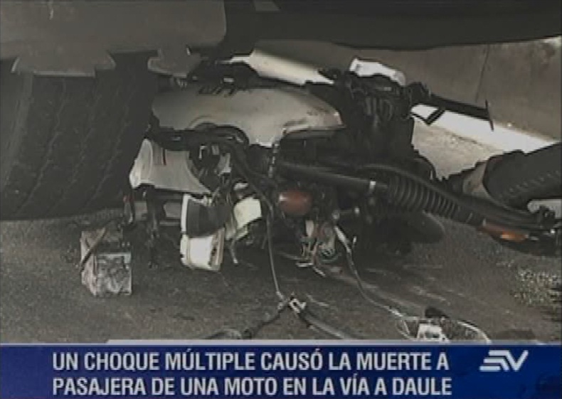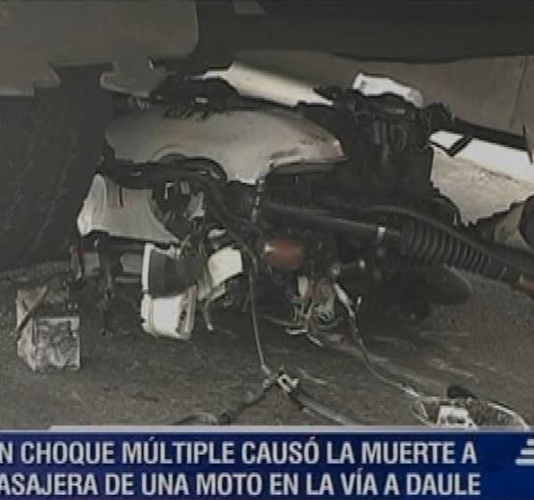La pasajera de una moto falleció, y otras personas resultaron heridas tras un choque múltiple que ocurrió esta mañana en la vía a Daule, en el norte de Guayaquil. Según testigos, el accidente lo causó un bus de transporte urbano que se quedó sin frenos.
