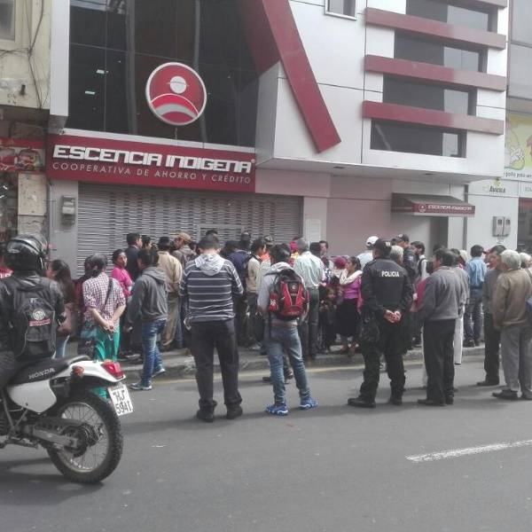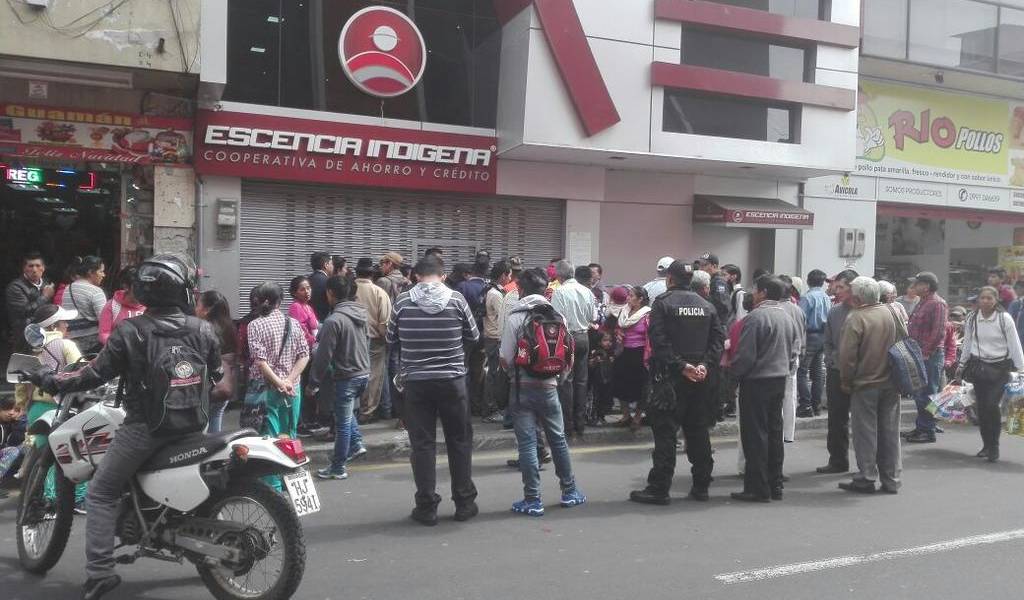 Afuera de las instalaciones de la Cooperativa de ahorro y Crédito Esencia Indígena en Ambato, decenas de socios se acercaron para conocer qué había pasado con su dinero. Ellos conocieron que la institución había cerrado sus puertas a nivel nacional. La entidad tiene sede en Ibarra, pero posee oficinas en diversas provincias de la Sierra.