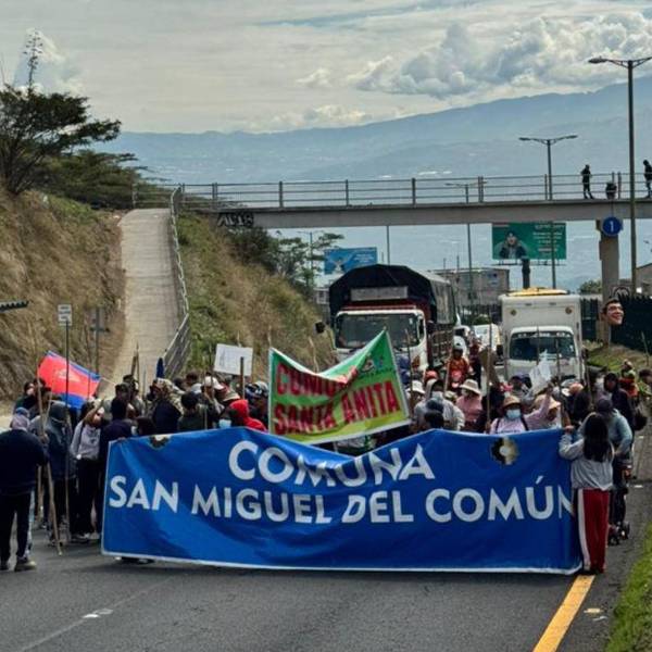 Los ciudadanos se encuentran apostados en la Panamericana Norte, sentido Guayllabamba-Quito, por lo que la circulación vehicular en ese sentido se encuentra cerrada.