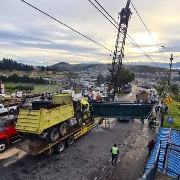 El 2 de septiembre del 2021, un tráiler que transportaba una volqueta destruyó el puente peatonal en Puengasí.( )
