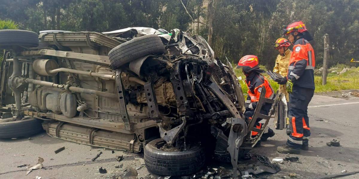 Otro incidente de tránsito ocurrió en la carretera a E35, a la altura del ingreso a Poaló. Se registró el estrellamiento por pérdida de pista de una camioneta contra un objeto estático, provocando un volcamiento de 3/4 de ciclo.