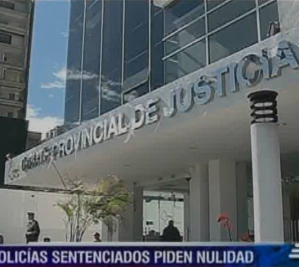 Cinco de los seis policías sentenciados por intento de asesinato al presidente de la República, Rafael Correa, llegaron a la Corte de Justicia de Pichincha para pedir que se anule la sentencia de 12 años de prisión que pesa sobre ellos.
