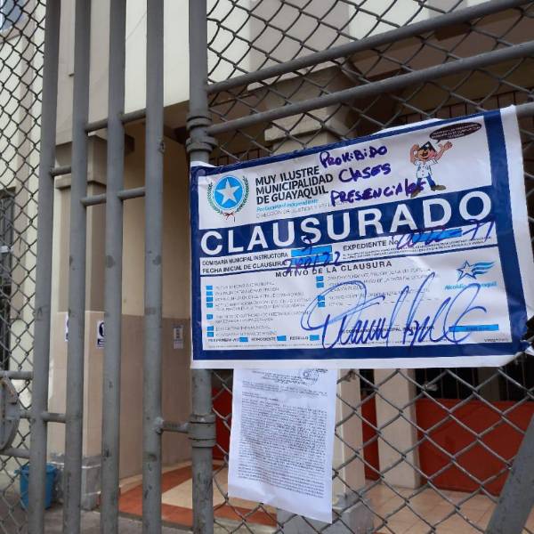 Según el Ministerio, ocho unidades educativas han sido clausurados en el Puerto Principal: dos particulares y seis fiscales. Sin embargo, Xavier Narváez, director de Justicia y Vigilancia del Municipio indica que han sido siete los planteles cerrados, entre esos los colegios Guayaquil, Simón Bolívar, Velasco Ibarra y Balandra.