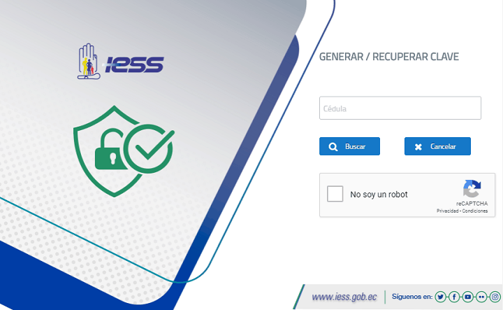 Captura de pantalla del sistema del IESS para generar o recuperar la clave.