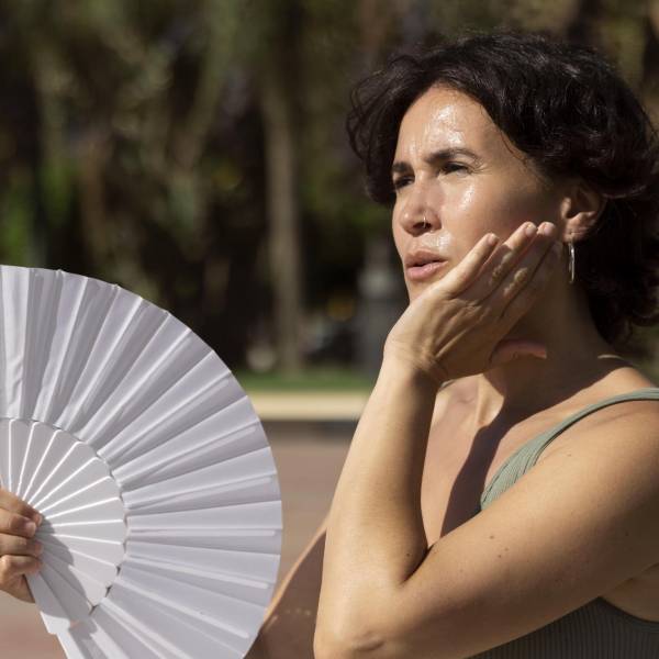 Una mujer con mucho calor por la extrema radiación( )