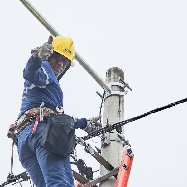 Imagen de un trabajador de la Corporación Nacional de Electricidad (CNEL) durante un trabajo de mantenimiento en la provincia de El Oro.( )